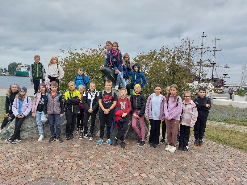 W piątek 06 października 2023 r. uczniowie klas II- VIII wzięli udział w wycieczce do Gdyni. Dzień zaczął się piękną pogodą. Do szkoły przyjechał budzący zachwyt, żółty, dwupiętrowy autobus. Po przybyciu do Gdyni uczniowie zostali podzieleni na trzy grupy. Wraz z nauczycielami mieli do wykonania różne zadania.