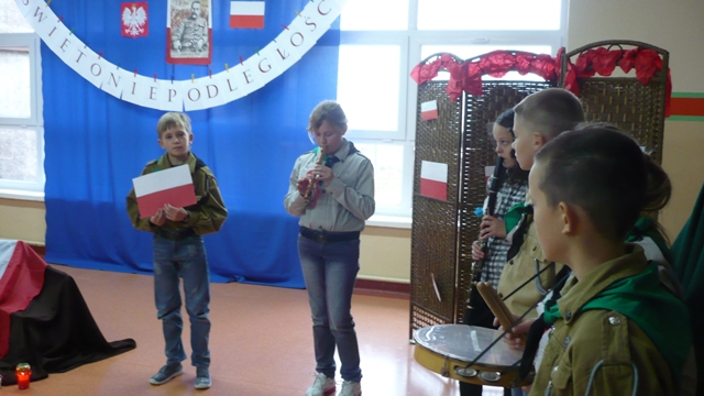 Dnia 14 listopada 2011 roku uczniowie naszej szkoły także uroczyście obchodzili Święto Niepodległości. Pod kierunkiem nauczyciela historii przygotowali przedstawienie patriotyczne pt. „Bez tej miłości można żyć”- recytowali wiersze, wcielali się w role zaborców i Polski, grali na instrumentach i śpiewali pieśni patriotyczne. Przygotowali okolicznościową gazetkę i dekoracje. Wszyscy uczniowie na białych bluzkach i koszulach mieli przepięte biało- czerwone kotyliony, bo uczniowie włączyli się też w ogólnopolską akcję ogłoszoną przez Prezydenta rzeczpospolitej Polskiej Bronisława Komorowskiego „Kotylion na 11 listopada”.