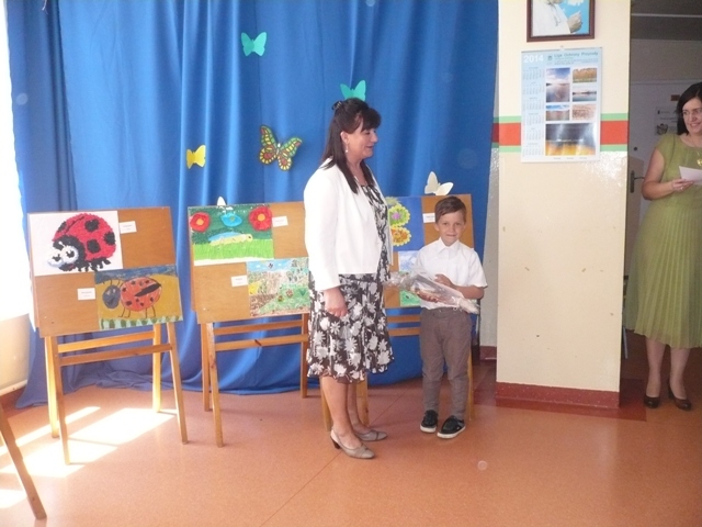 W dniu 23.05.2014 roku w Szkole Podstawowej w Koloni nastąpiło ogłoszenie wyników i wręczenie nagród w VIII Gminnym Konkursie Ekologiczno – Plastycznym pt. ,,Owady naszych łąk, pól i lasów ”. Zaszczycili nas swoją obecnością p. Elżbieta Szyler prezes kartuskiego oddziału Ligi Ochrony Przyrody oraz p. Witold Sieciechowski kierownik oddziału Kaszubskiego Parku Krajobrazowego w Kartuzach. Konkurs dla uczniów naszej gminy, został ogłoszony w lutym 2014 roku z okazji corocznej akcji ekologicznej, jaką jest „Sprzątanie Ziemii ”. Celem powyższej inicjatywy było promowanie postaw proekologicznych , propagowanie zdrowego stylu życia oraz rozwijania inwencji twórczej. W konkursie wzięli udział uczniowie z 8 szkół : SP w Mirachowie, ZS w Staniszewie, PSP w Pomieczyńskiej Hucie, SP w Goręczynie, SP w Prokowie, OEK SP w Starej Hucie,ZKiW w Dzierżąznie oraz SP w Koloni. Na konkurs wpłynęło łącznie 345 prac plastycznych, wykonanych rozmaitymi technikami, wszystkie wyróżniały się dogłębnym zrozumieniem tematu oraz wysokimi walorami artystycznymi. Komisja w składzie : p. H. Szostak, p. M Szadkowska, p. L. Dampc oraz p. B. Merchel dyrektor szkoły dokonała analizy merytorycznej i artystycznej prac konkursowych. Wyróżniono i nagrodzono 24 obrazy .