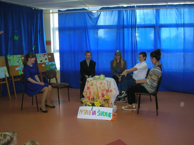 ,, Pytanie na śniadanie - kawa czy herbata”. W dniu 09.06.2014r. z przedstawieniem profilaktycznym uczniowie gimnazjum w Staniszewie gościnnie wystąpili w naszej szkole. Pokazali różne aspekty nałogów oraz zachęcili wszystkich do asertywnego zachowania wobec używek.