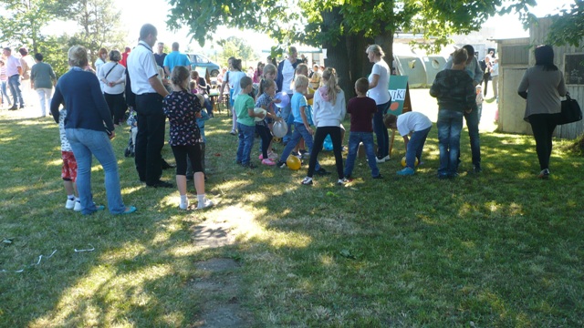 Młodzież uczestniczyła w turnieju ringo i rzutach do celu. Sędziami i jurorami w konkurencjach byli nauczyciele. Konkurencje dla dorosłych także uzyskały ogromny aplauz – mężczyźni pokonywali boisko z kubkami pełnymi wody, ciągnęli oponę na czas, panie robiły szalik na drutach i tarły marchewkę na surówkę, pary rodzic –dziecko uczestniczyły w konkurencji ubierania i rozbierania na czas, natomiast pary małżeńskie tańczyły na gazecie. Było przy tym wiele śmiechu i radości. Ważnym punktem programu było strzelanie do tarczy przez dzieci, młodzież i dorosłych przy udziale LOK –Kartuzy. Dzieci gromadziły się przed „Zjeżdżalnią – zamkiem” oraz chętnie „puszczały” bańki mydlane.