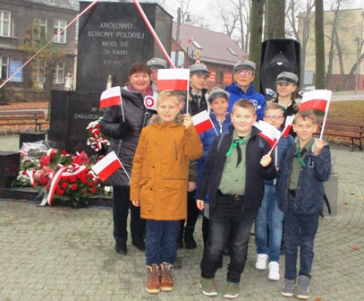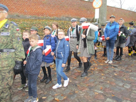 1 DH im. H. Derdowskiego i 1 GZ „Ekoludki” wraz z druhnami oraz Dyrektor szkoły Panią Bożeną Merchel wzięły udział w powiatowo-gminnych obchodach 100-lecia Odzyskania Niepodległości przez Polskę w Kartuzach. Uroczystości zaczęliśmy już w sobotę, uczestnicząc w kościele Św. Kazimierza w Kartuzach w modlitewnym czuwaniu przed 100 rocznicą odzyskania niepodległości. Dziękowaliśmy Bogu za życie, za Naród i za naszych Bohaterów. W niedzielę uczestniczyliśmy we wspólnym przemarszu ulicami Kartuz pocztów sztandarowych, przedstawicieli władz powiatu, gminy, organizacji oraz mieszkańców. Następnie wzięliśmy udział w uroczystej Mszy Św. w intencji Ojczyzny w Kolegiacie p.w. Wniebowzięcia Najświętszej Maryi Panny. Po mszy przeszliśmy pod pomnik Matki Boskiej Królowej Korony Polskiej, gdzie miały miejsce okolicznościowe przemówienia: „ … Narodowe Święto Niepodległości wyraża dla każdego Polaka nie tylko radość z odzyskanej wolności, ale także skłania do refleksji. Mam nadzieję, że ten niebywały entuzjazm naszych przodków pozostanie z nami, inspirując nas do działania, budząc dumę z polskości i naszego bogatego dziedzictwa.(…). Zróbmy wszystko, aby 11 listopada był dniem radosnym i wyjątkowym dla każdego Polaka. To dzień ponownych narodzin naszej ojczyzny. Tegoroczne obchody Dnia Niepodległości przyjmą wyjątkową oprawę. Rok 2018 jest bowiem rokiem, w którym świętujemy już 100. rocznicę wyzwolenia spod zaborów - mówiła Janina Kwiecień, Starosta Kartuski „ i składanie kwiatów. Po oficjalnej części przeszliśmy na Rynek, wzięliśmy udział w Happeningu Patriotycznym n ̊10 „Wolność zapisana”- byliśmy współtwórcami wielkogabarytowych postaci i listów do wolności. Wspólnie śpiewaliśmy hymn i pieśni patriotyczne. Niektórzy z nas częstowali grochówką przybyłych na uroczystości. Mimo chłodu wokół panowała serdeczna i radosna atmosfera.