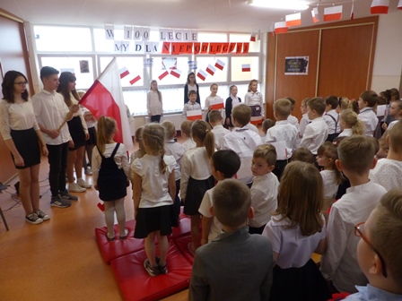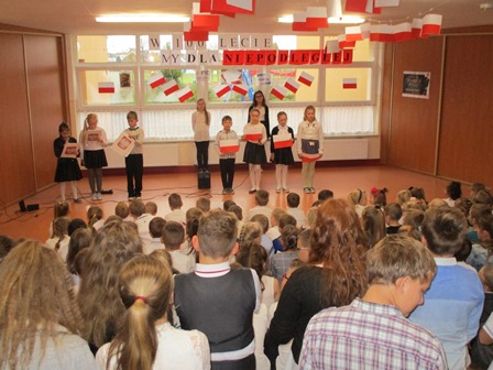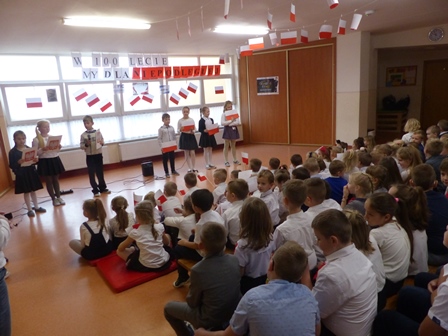 Klasa III pod kierunkiem Pani Bożeny Foltyn przygotowała montaż słowno-muzyczny pt.: „My dla Niepodległej”. Wiersze o tematyce patriotycznej, scenki ważnych wydarzeń z naszej historii przeplatane były pieśniami patriotycznymi i żołnierskimi m.in. „Wojenko, wojenko”, „Legiony”, „Szara piechota”. Wszyscy zaśpiewali cztery zwrotki „Mazurka Dąbrowskiego” oraz „Rotę”.
