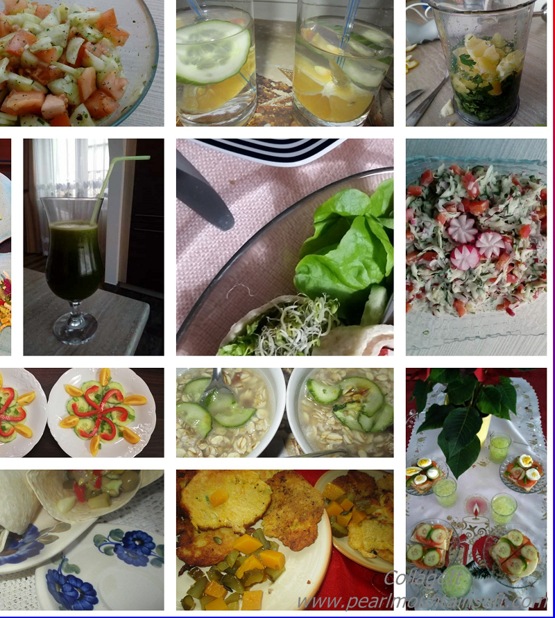 w prawie 97 proc. składa się z wody, dlatego szybko pozwoli ugasić pragnienie. Warzywo to nadaje się do jedzenia na surowo jako dodatek do kanapek, można przyrządzić z niego wspaniałe sałatki, surówki, koktajle ale równie doskonale nadaje się na zimowe przetwory. Poniżej znajdują się zdjęcia dań z wykorzystaniem ogórka, które przygotowali nasi uczniowie z klas I-III wraz ze swoimi rodzicami.