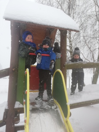 Ubiegły tydzień był dla przedszkolaków czasem beztroskich zabaw i odpoczynku. Najbardziej dzieci cieszyły się śniegiem, na który z utęsknieniem czekały. Korzystając z zimowej aury uczestniczyły w wesołych zabawach na śniegu; rzucały śnieżkami, lepiły bałwany i zjeżdżały na workach. Podczas zajęć w sali dzieci aktywnie uczestniczyły w rozmowach i zabawach aktywizujących związanych z zimą, mrozem, śniegiem, sportami zimowymi. Dzieci opowiadały także o swoich ulubionych zabawach zimowych. Przed zabawami na śniegu wychowawczyni omówiła z dziećmi zasady bezpiecznych zabaw na śniegu i lodzie. „Radość” towarzyszyła dzieciom każdego dnia.