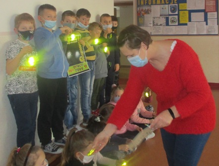 W ramach akcji przedstawiciele Straży Miejskiej gościli w murach naszej szkoły. Przekazali odblaski wraz z plakatem ”Bądź widoczny, noś odblaski” dla uczniów klas I-III Pani Dyrektor Bożenie Merchel. Następnie odblaski zostały wręczone uczniom. Dzieci umieszczą odblaski na tornistrach szkolnych. Będą widoczne dla każdego uczestnika ruchu drogowego.