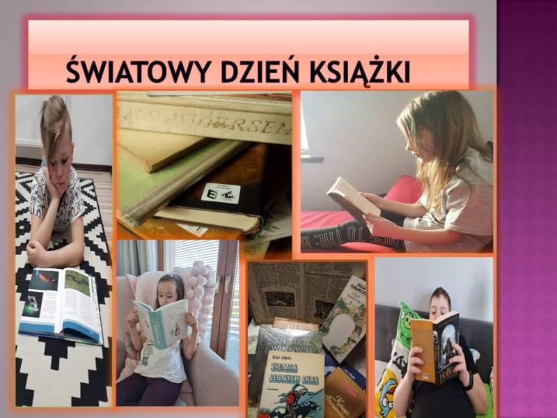 Światowy Dzień Książki obchodzony jest 23 kwietnia. Data ta wybrana została jako symboliczna dla literatury światowej. Pomysł organizacji święta zrodził się w 1926 roku. Jest to święto wszystkich czytelników i ludzi związanych z książką i pisaniem. Tradycyjnie poświęcony jest promocji literatury i czytelnictwa, a także problematyce związanej z ochroną praw autorskich. Co roku staje się okazją do dyskusji na temat roli książki jako źródła wartości i wiedzy. W tym roku zachęcamy do celebracji tego pięknego święta z dobrą książką w dłoniach! Powinniśmy wykorzystać moc książek do walki z izolacją. Czytając możemy podróżować dzięki wyobraźni. Czas pandemii wyjątkowo sprzyja lekturze – zarówno indywidualnej, dla własnej przyjemności, jak i wspólnemu czytaniu z dziećmi, aby wykształcić nawyk czytania przez całe życie. Uczniowie naszej szkoły nie zapomnieli o tej niezwykłej przyjemności.