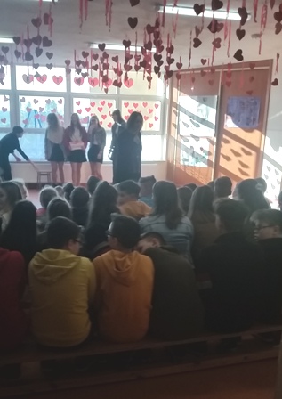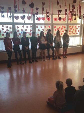 14 lutego – Walentynki. Już od poniedziałku na terenie szkoły działała poczta walentynkowa. Wcześniej uczniowie zostali poinformowani przez organizatorów (kl. VIII), że takie wydarzenie będzie miało miejsce, aby każdy zainteresowany mógł przygotować kartkę.